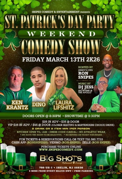 St.Patrick’s Day Comedy Show + Add to Google Calendar + iCal / Outlook export 00 days 00 hours 00 minutes 00 seconds Date Mar 13 2026 Time All Day Share this event Search for:
